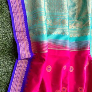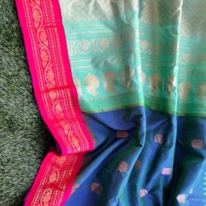 Handwoven Gadwal Ganga Jamuna Border Silk Saree