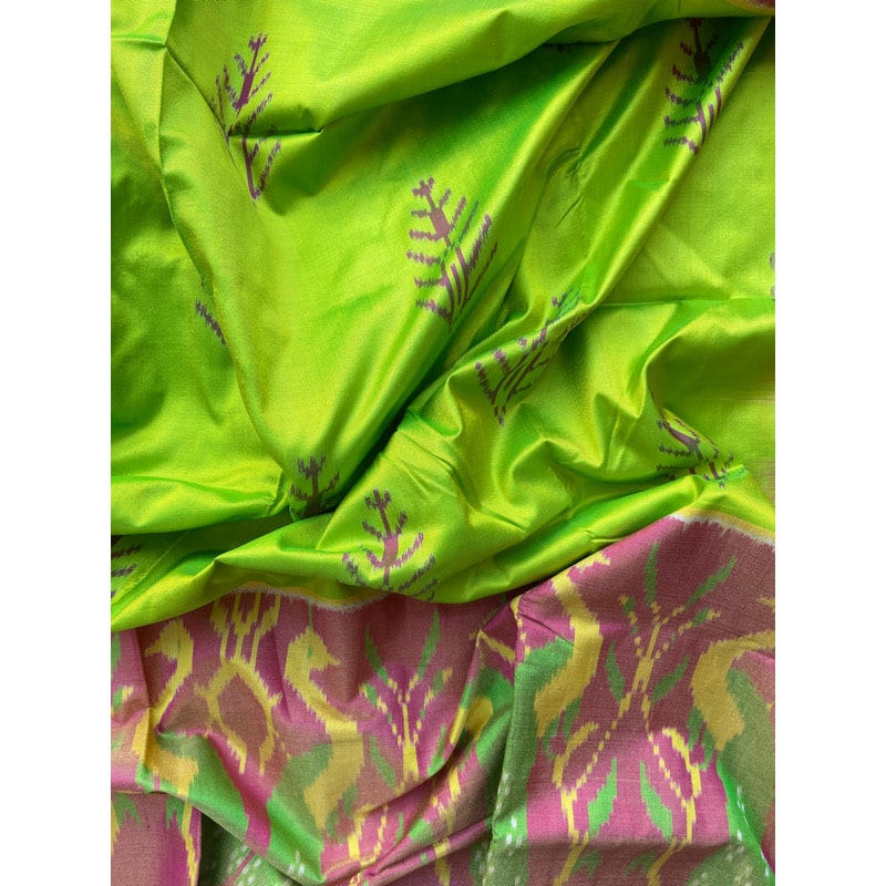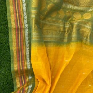 Handwoven Ponduru Khadi Jamdani Tree of Life with Parrots
