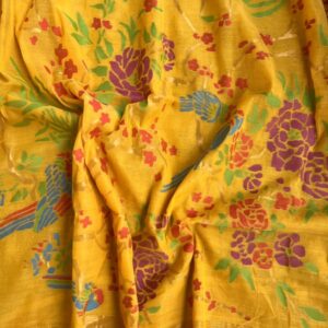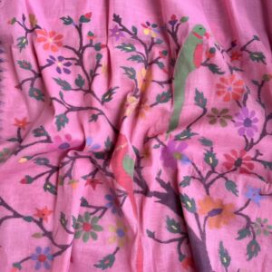 Handwoven Ponduru Khadi Jamdani Roses and Parrots