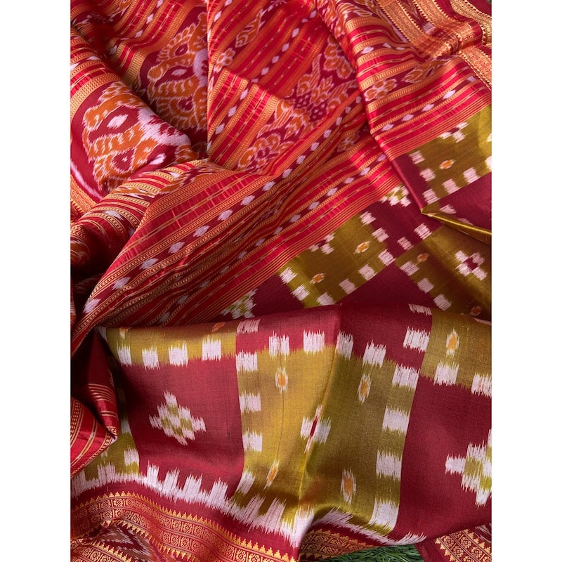 Handwoven Pasapalli Sambalpuri Silk Double Ikkat Saree By Master Weaver