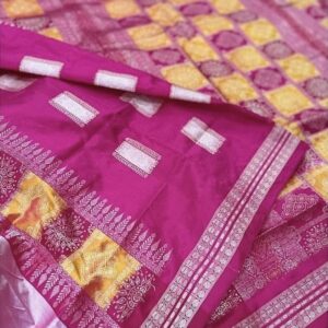 ₹9,493.00Handwoven Chequered Puri temple themed Ikkat Sambalpuri saree by National Award Winner Weaver