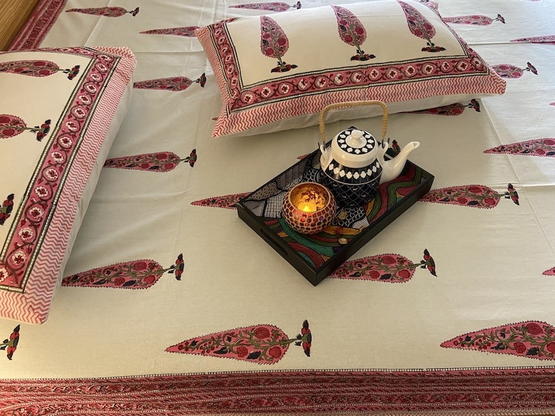 Hand block printing is a centuries old art form in India. It is also referred to as “block printing” or “woodblock printing”. This ancient printing technique utilises a hand carved teak wood block that is dipped in dye and stamped by hand onto cotton or silk. The result is truly unique , hand block printed fabric that connects us to a rich tradition and history of handmade crafts.