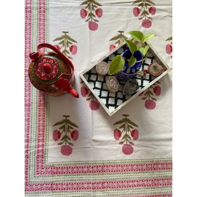 Hand block printing is a centuries old art form in India. It is also referred to as “block printing” or “woodblock printing”. This ancient printing technique utilises a hand carved teak wood block that is dipped in dye and stamped by hand onto cotton or silk. The result is truly unique , hand block printed fabric that connects us to a rich tradition and history of handmade crafts.