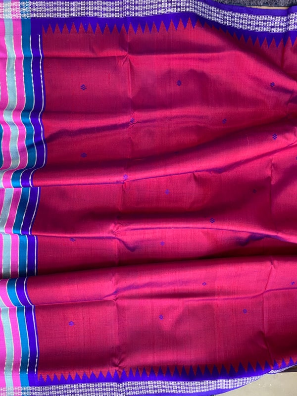 Brahmapuri Patta saree is registered under the Geographical Indications (GI) of Goods (Registration and Protection) Act by Government of India. The “sari” meant for women and the “joda” meant for men. For this famous silk work, Brahmapur is also known as silk city of India.