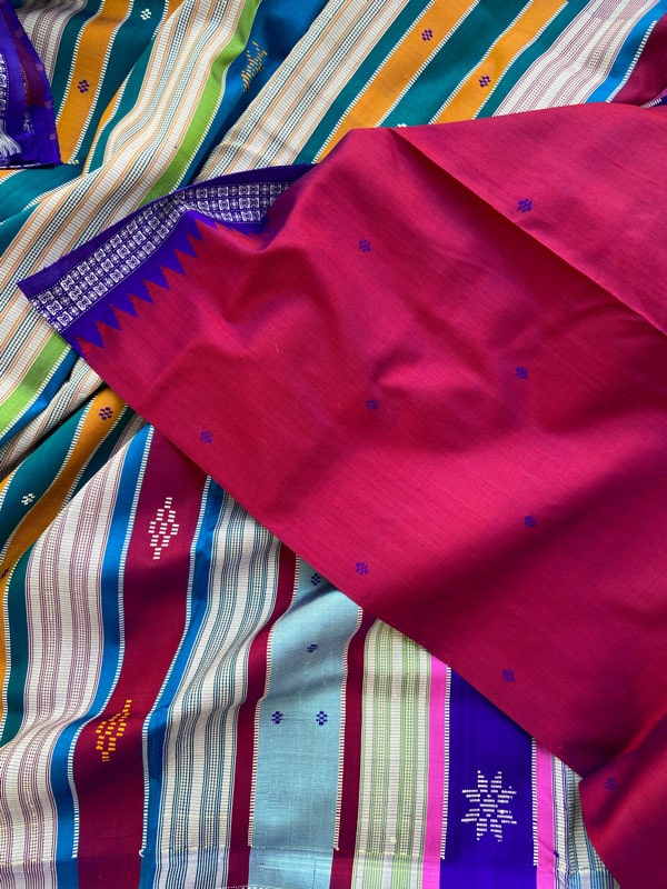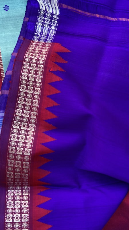 The Berhampuri silk saree is unique due to its typical Odissi style of weaving and kumbha, particularly phoda, temple type design. “The zari work border design is different from others. The weaving technique is said to have originated over 200 years ago. The finely woven sarees were known to be exported to southeast Asian and other countries through the Gopalpur port in the days of yore. The sarees also adorn the deities of Jagannath, Balabhadra and Subhadra at the Jagannath temple in Puri.