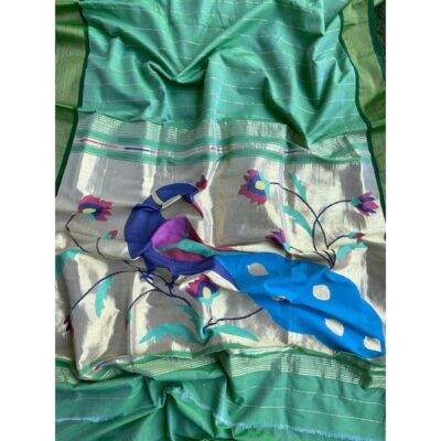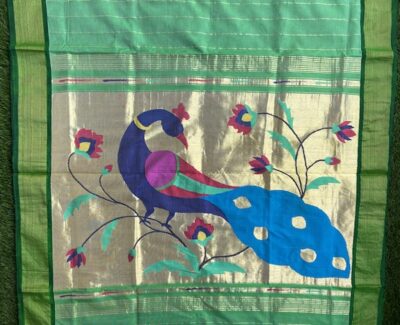 Be the first to review “Handwoven Cotton Peacock Paithani Saree”