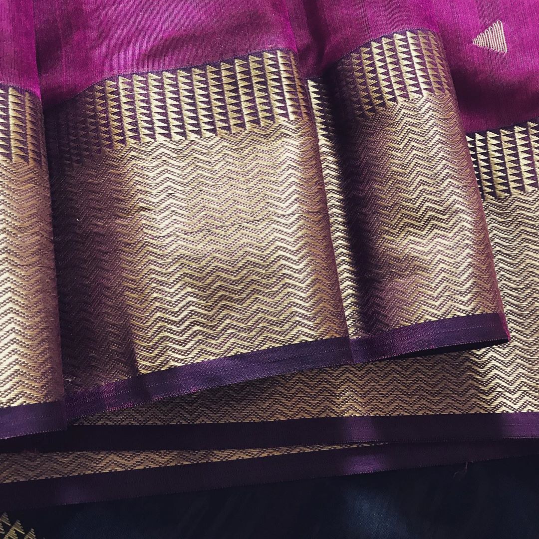 The designs in the Maheshwari sarees were inspired by the detailing on the walls of the Fort of Maheshwar. The popular designs used in these sarees, which were inspired from the designs on the fort walls are the Chatai pattern that is the Mat pattern, the Chameli ka phool pattern that is the Chameli flower pattern, the Eent pattern that is the Brick pattern as well as the Heera pattern that is the Diamond pattern. These designs are found on Maheshwari sarees even today.Originally, the Maheshwari saree was made of pure silk. Then in course of time, these sarees began to be made in pure cotton and with a mixture of silk and cotton (silk yarn in the warp and cotton in the weft). Nowadays, wool is also being used in the production of Maheshwari sarees. These sarees are extremely light in weight and present a sharp contrast to the Kanchipuram sarees of South India.