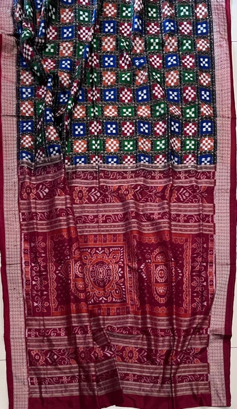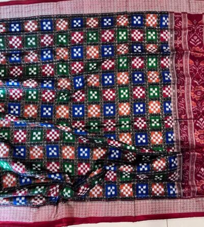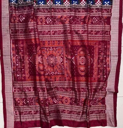 Sambalpuri sarees are known for their incorporation of traditional motifs like shankha (shell), chakra (wheel), phula (flower), all of which have deep symbolism with the native Odia colour red black and white represent true Odia Culture alongwith Lord Kaalia(Jagannatha)’s face colour,