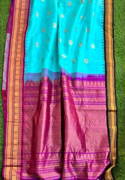Gadwal saaree are handwoven in Gadwal of Jogulamba Gadwal district in the Indian state of Telangana. It was registered as one of the geographical indication from Telangana by Geographical Indications of Goods (Registration and Protection) Act, 1999.They are most notable for the Zari on the sarees.The Brahmostsavas of Tirupati begins with the Gods idol being adorned with gadwal Saree.