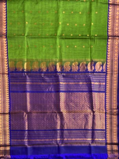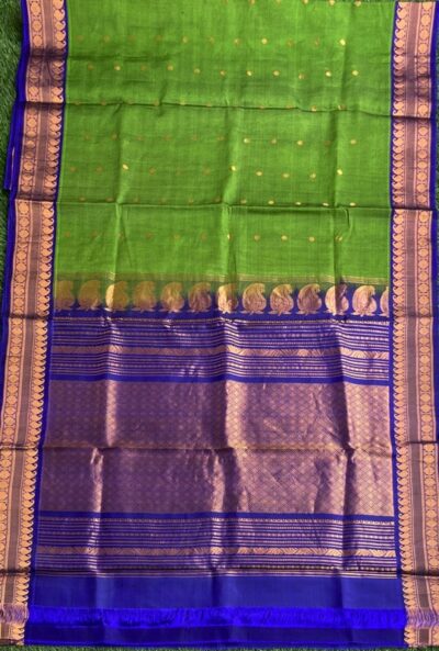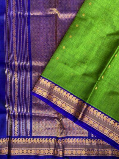 The weaving technique used to design the Gadwal sarees is the interwoven weft technique which was traditionally known as Kupadam and the weaving style for the borders was known as kumbam. These sarees were woven in pure Silk as well and were made available in contrasting colors like lime green or a canary yellow. Most sarees in the present times are Cotton and Silk hybrid.
