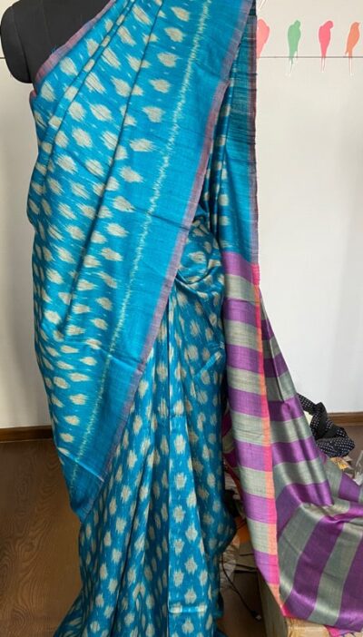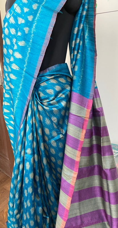 Threads are dyed in different shades, such as maroon, red, plum and rust. Fabrics are designed in tussar and gheecha and enhanced with a weft and cut shuttle technique.