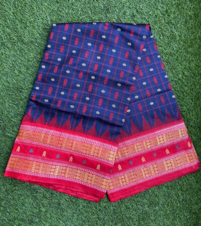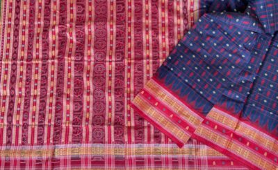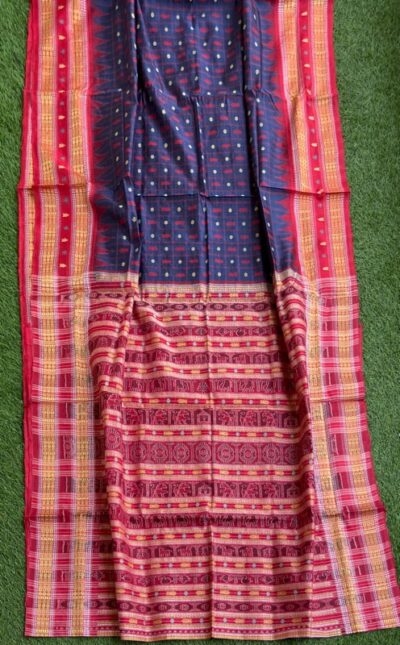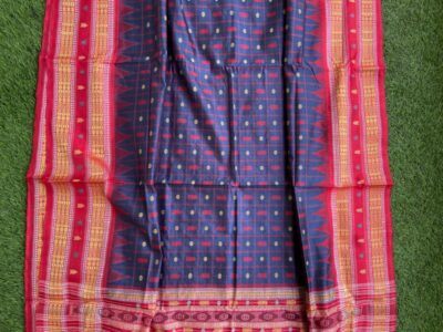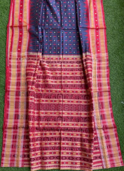 Sambalpuri sarees are known for their incorporation of traditional motifs like shankha (shell), chakra (wheel), phula (flower), all of which have deep symbolism with the native Odia colour red black and white represent true Odia Culture alongwith Lord Kaalia(Jagannatha)’s face colour,