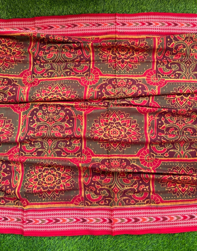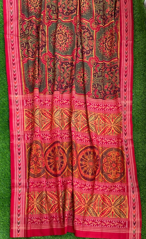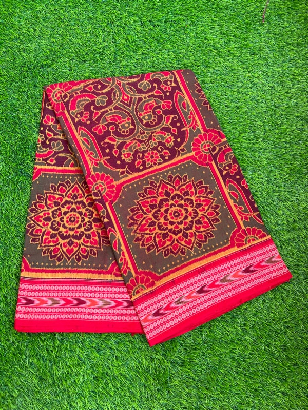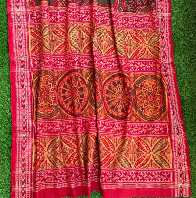 Sambalpuri sarees are known for their incorporation of traditional motifs like shankha (shell), chakra (wheel), phula (flower), all of which have deep symbolism with the native Odia colour red black and white represent true Odia Culture alongwith Lord Kaalia(Jagannatha)’s face colour,
