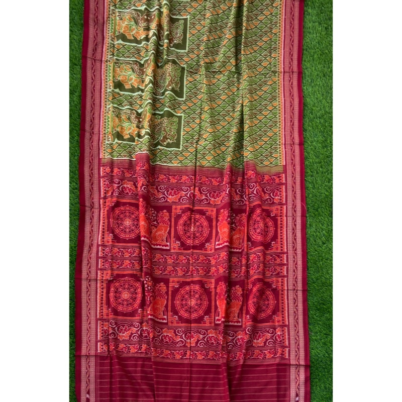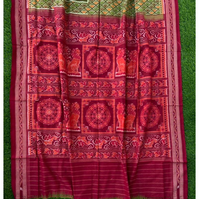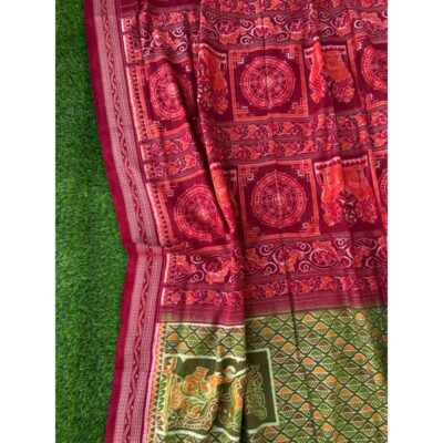 Sambalpuri sarees are known for their incorporation of traditional motifs like shankha (shell), chakra (wheel), phula (flower), all of which have deep symbolism with the native Odia colour red black and white represent true Odia Culture alongwith Lord Kaalia(Jagannatha)’s face colour,