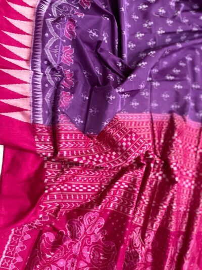 Sambalpuri sarees are known for their incorporation of traditional motifs like shankha (shell), chakra (wheel), phula (flower), all of which have deep symbolism with the native Odia colour red black and white represent true Odia Culture alongwith Lord Kaalia(Jagannatha)’s face colour,