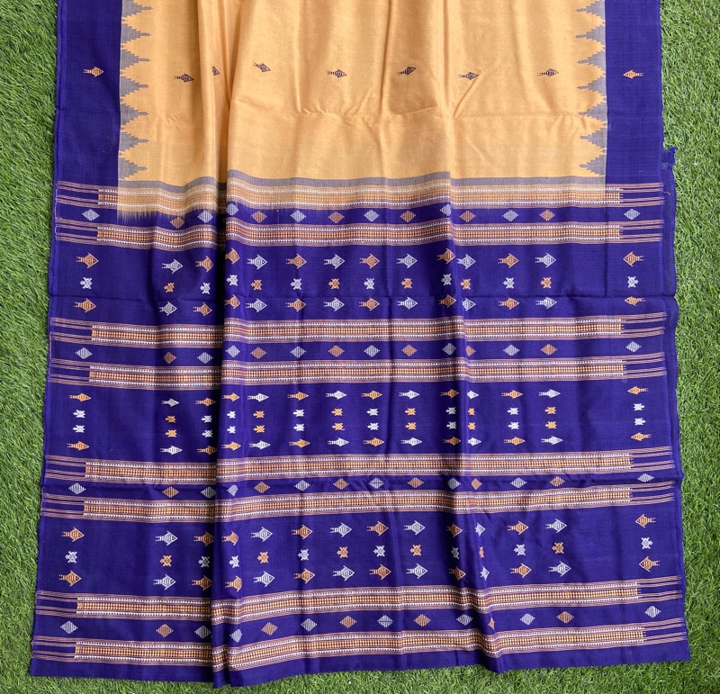 A Sambalpuri saree is a traditional handwoven ikat or sari (locally called sadhi) wherein the warp and the weft are tie-dyed before weaving. It is produced in the Bargarh, Sonepur, Sambalpur, Balangir district, Boudh District of Odisha. The saree is a traditional female garment in the Indian Subcontinent consisting of a strip of unstitched cloth ranging from four to nine metres in length that is draped over the body in various styles.