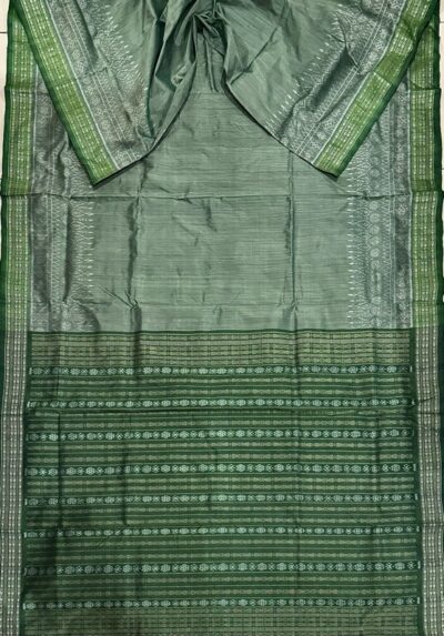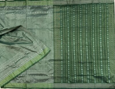 Two versions of Jagannath iconography but the highpoint of these sarees is the traditional craftsmanship of the ‘Bandhakala’, the Tie-dye art reflected in their intricate weaves, also known as Sambalpuri “Ikkat”. In this technique, the threads are first tie-dyed and later woven into a fabric, with the entire process taking many weeks. These sarees first became popular outside the state when the late Prime Minister Indira Gandhi started wearing them. In the 1980s and 1990s they became popular across India. To provide protection to the weavers practicing this art, the handloom silk sarees manufactured in Sambalpur and Berhampur (Berhampur Pattu) in Odisha were included in the Government of India’s Geographical Indications (GI) registry.