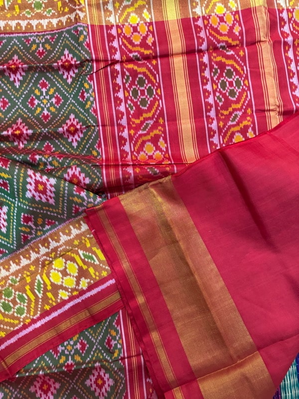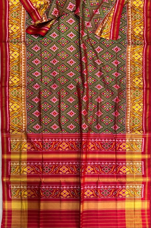 Patola saris from Rajkot , Ahmedabad and Patan are renowned for their colourful diversity and geometrical style.