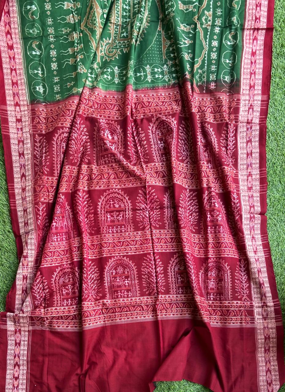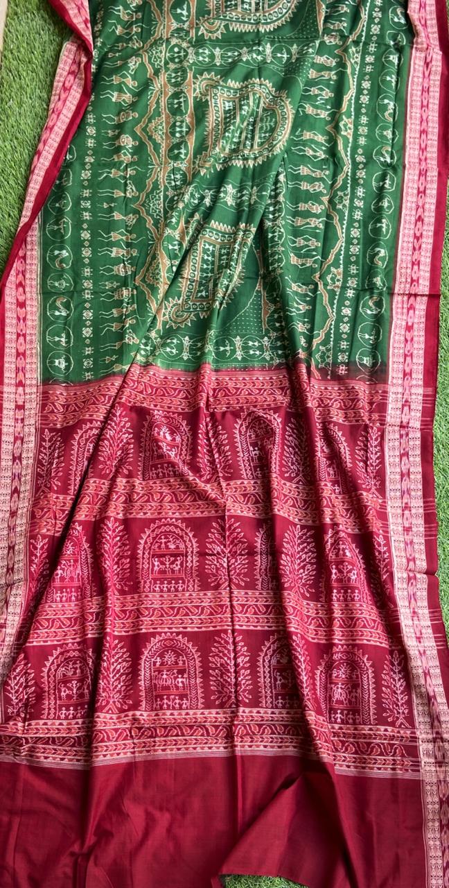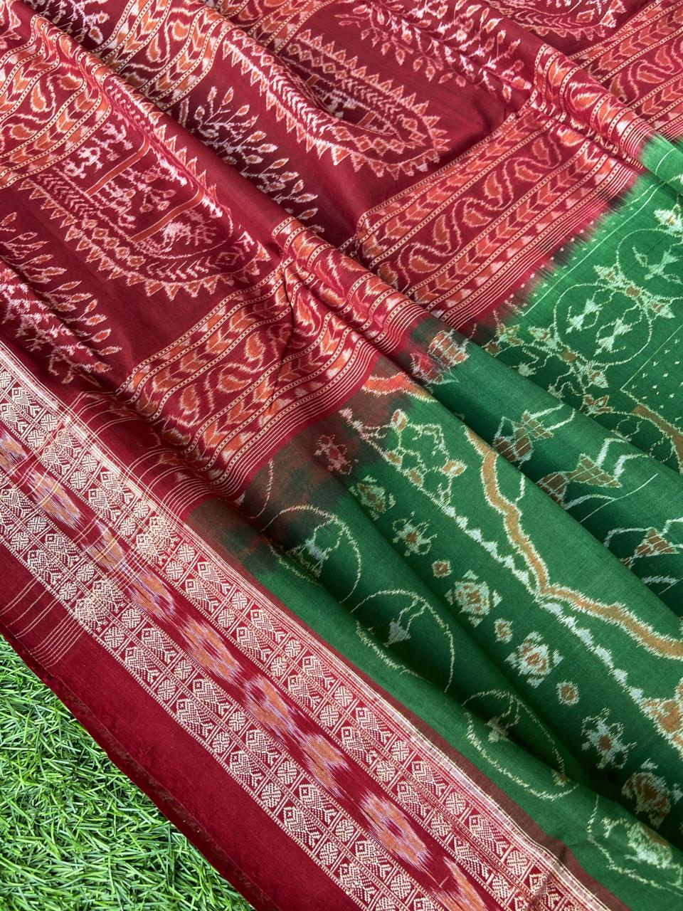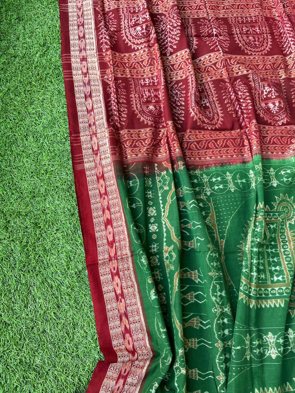 Sambalpuri sarees are known for their incorporation of traditional motifs like shankha (shell), chakra (wheel), phula (flower), all of which have deep symbolism with the native Odia colour red black and white represent true Odia Culture alongwith Lord Kaalia(Jagannatha)’s face colour,