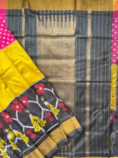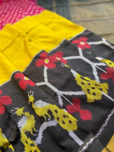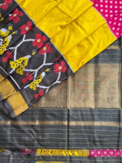 Be the first to review “Handwoven Silk Ikkat Pochampally Saree Tri colour”