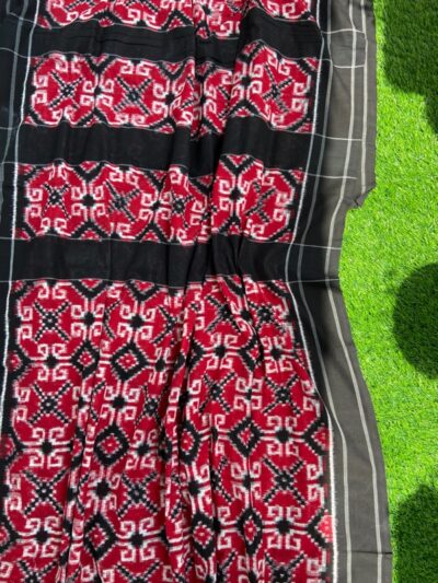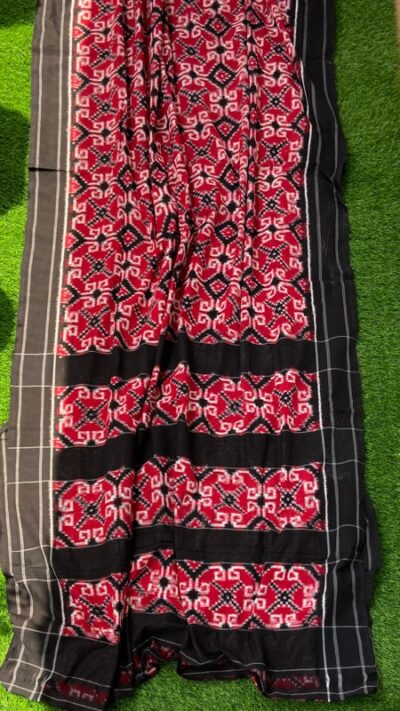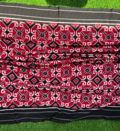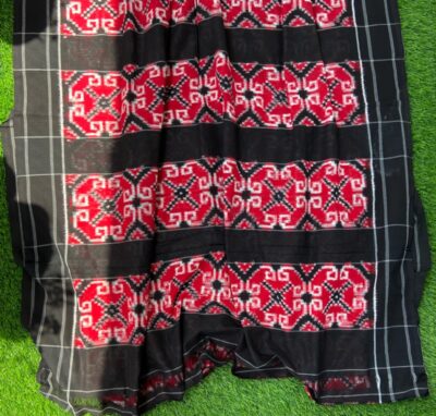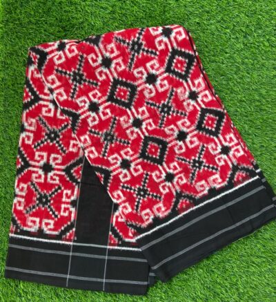 Woven in a flying shuttle loom in the intricate double ikat style, the telia rumal is a valuable craft that has been exported for centuries. The word telia (meaning oil) comes from the artisan’s distinctive use of castor ash and oil for colour retention. The word rumal (meaning handkerchief) is a nod to the square shape it was woven into for use as a headgear.