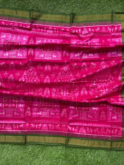 Sambalpuri sarees are known for their incorporation of traditional motifs like shankha (shell), chakra (wheel), phula (flower), all of which have deep symbolism with the native Odia colour red black and white represent true Odia Culture alongwith Lord Kaalia(Jagannatha)’s face colour,