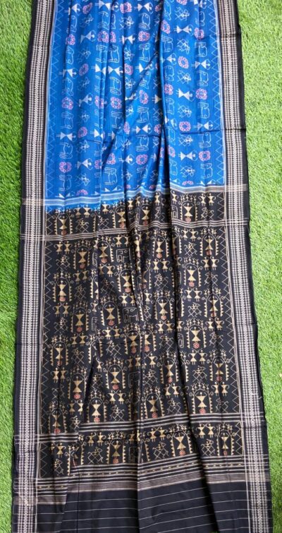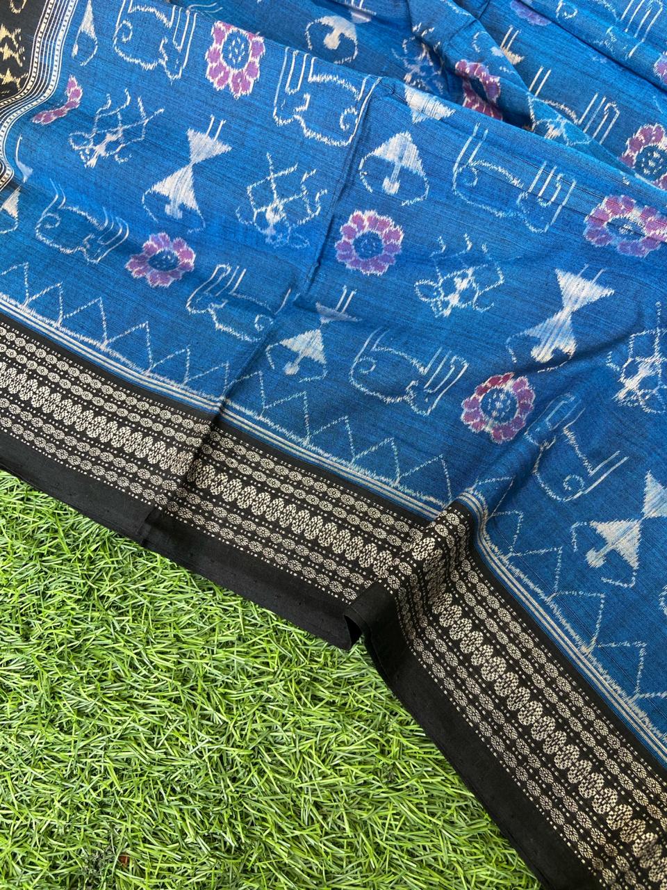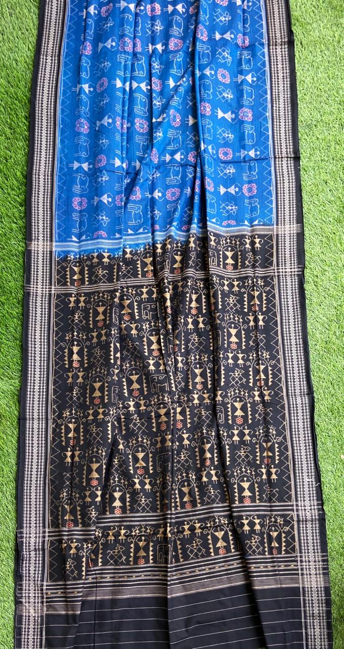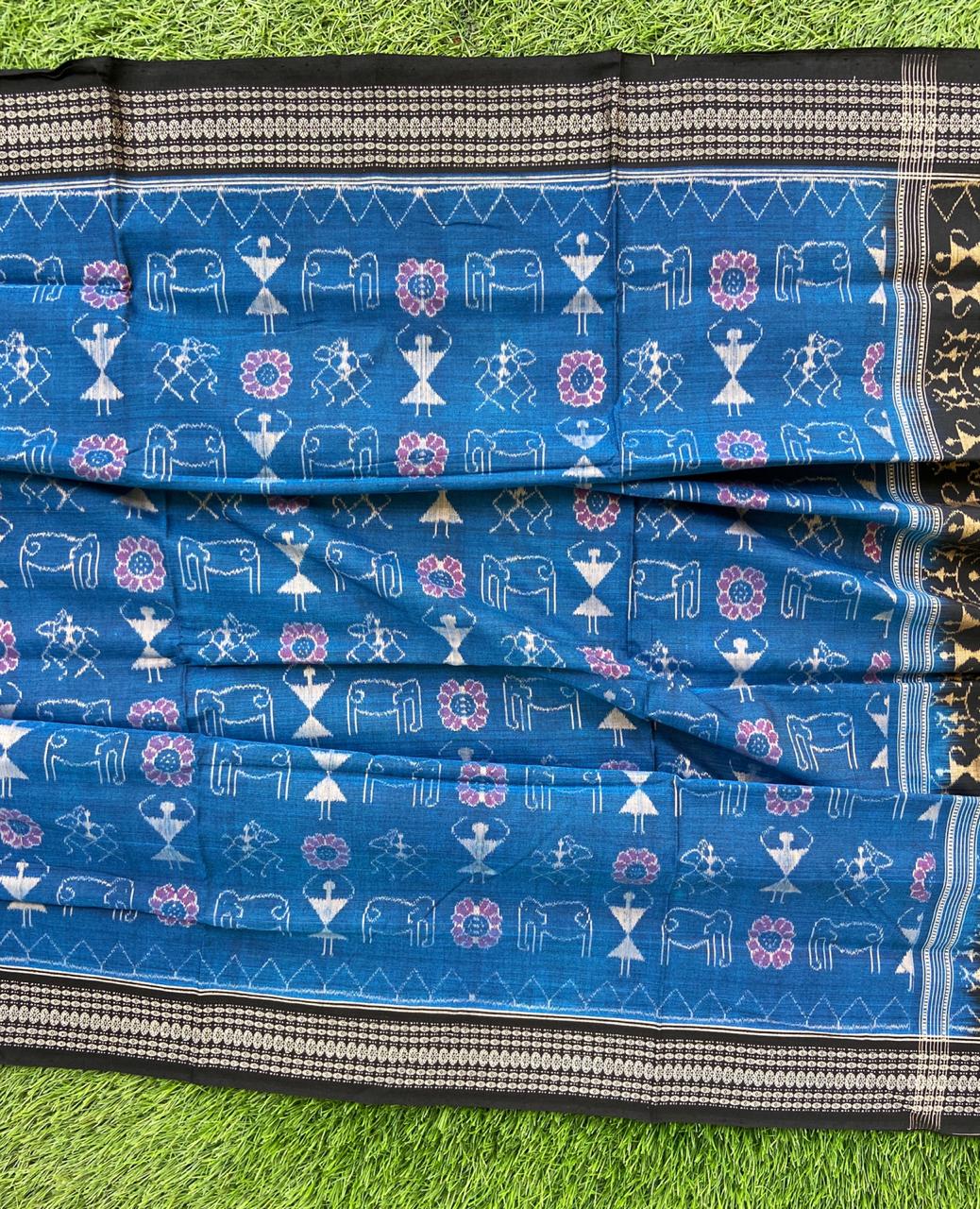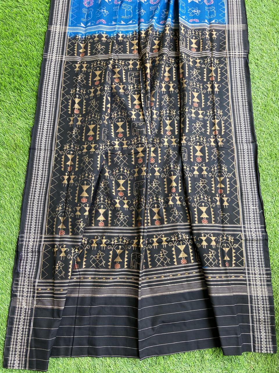 Handwoven Tribal Scene Ikkat Sambalpuri saree by National Award Winner Weaver