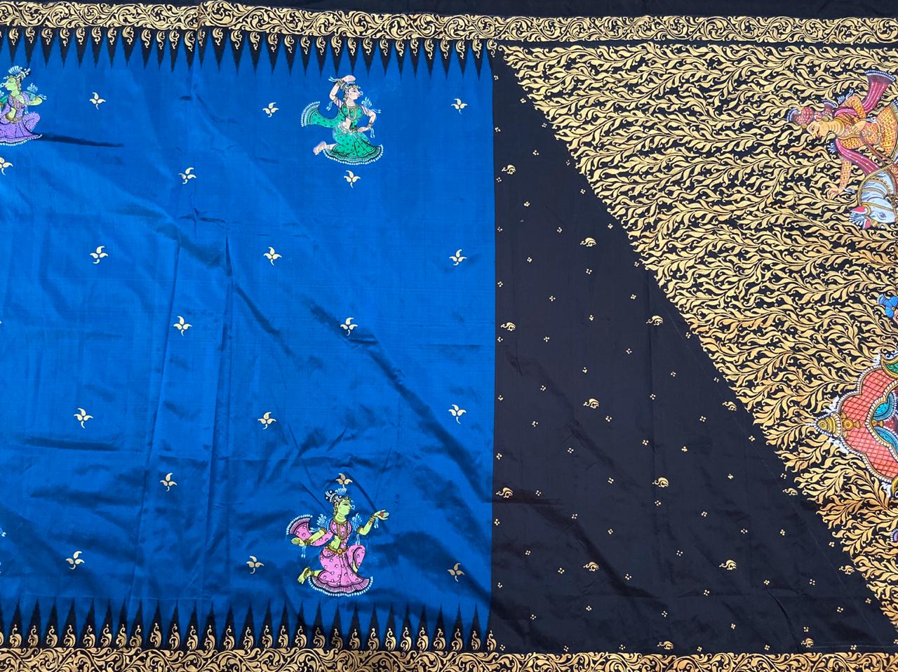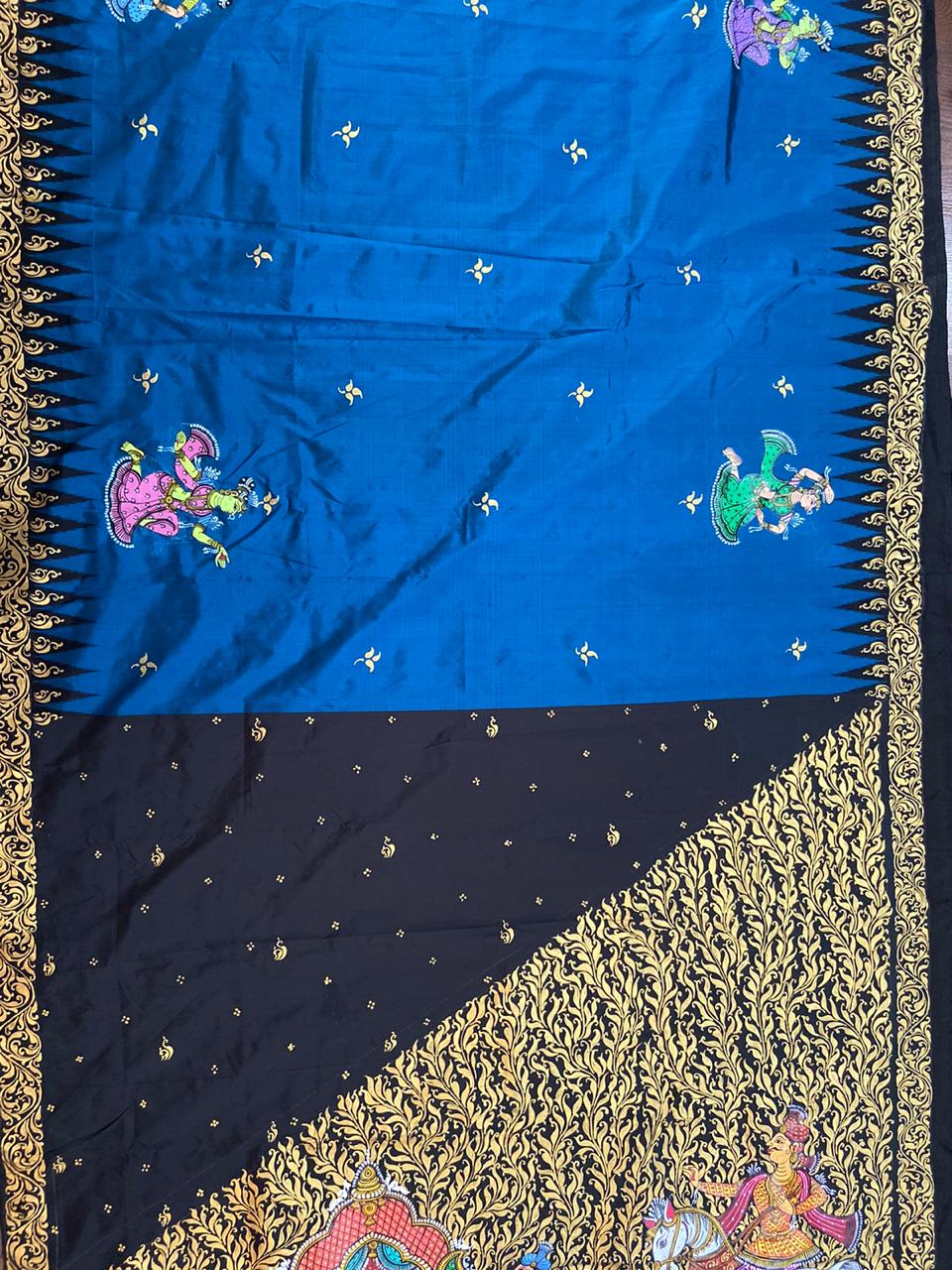 Sambalpuri sarees are known for their incorporation of traditional motifs like shankha (shell), chakra (wheel), phula (flower), all of which have deep symbolism with the native Odia colour red black and white represent true Odia Culture alongwith Lord Kaalia(Jagannatha)’s face colour,
